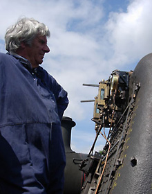 The boiler being turned. Blackmoor Vale, in the background, is undergoing annual maintenance. |