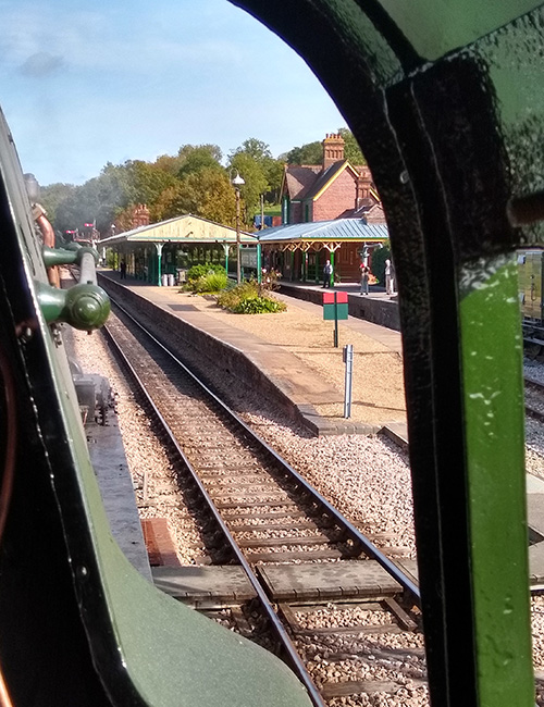 Entering Horsted Keynes Station on another test run, ready to exchange tokens. |