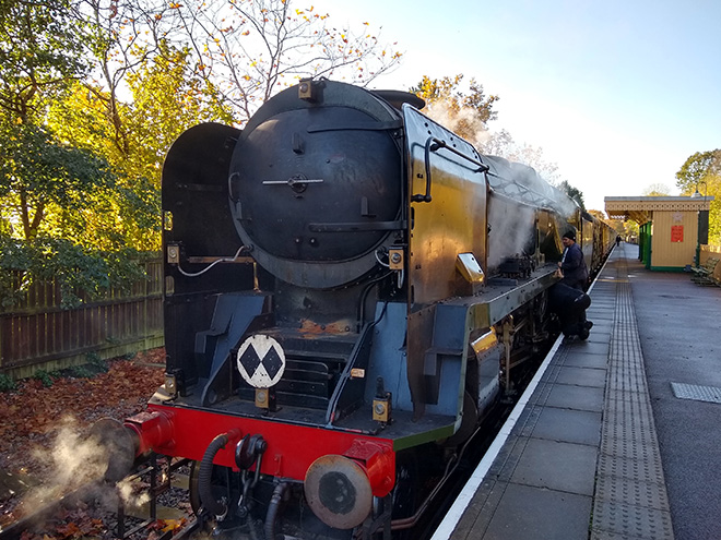 Wednesday 11th October saw the first loaded test run to East Grinstead of No. 34059 Sir Archibald Sinclair, which now has the smoke deflectors and nameplate brackets attached.